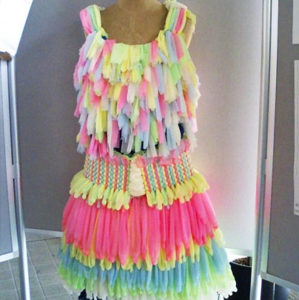 2. Vestido adornado con los vasos de plástico de yogurt.