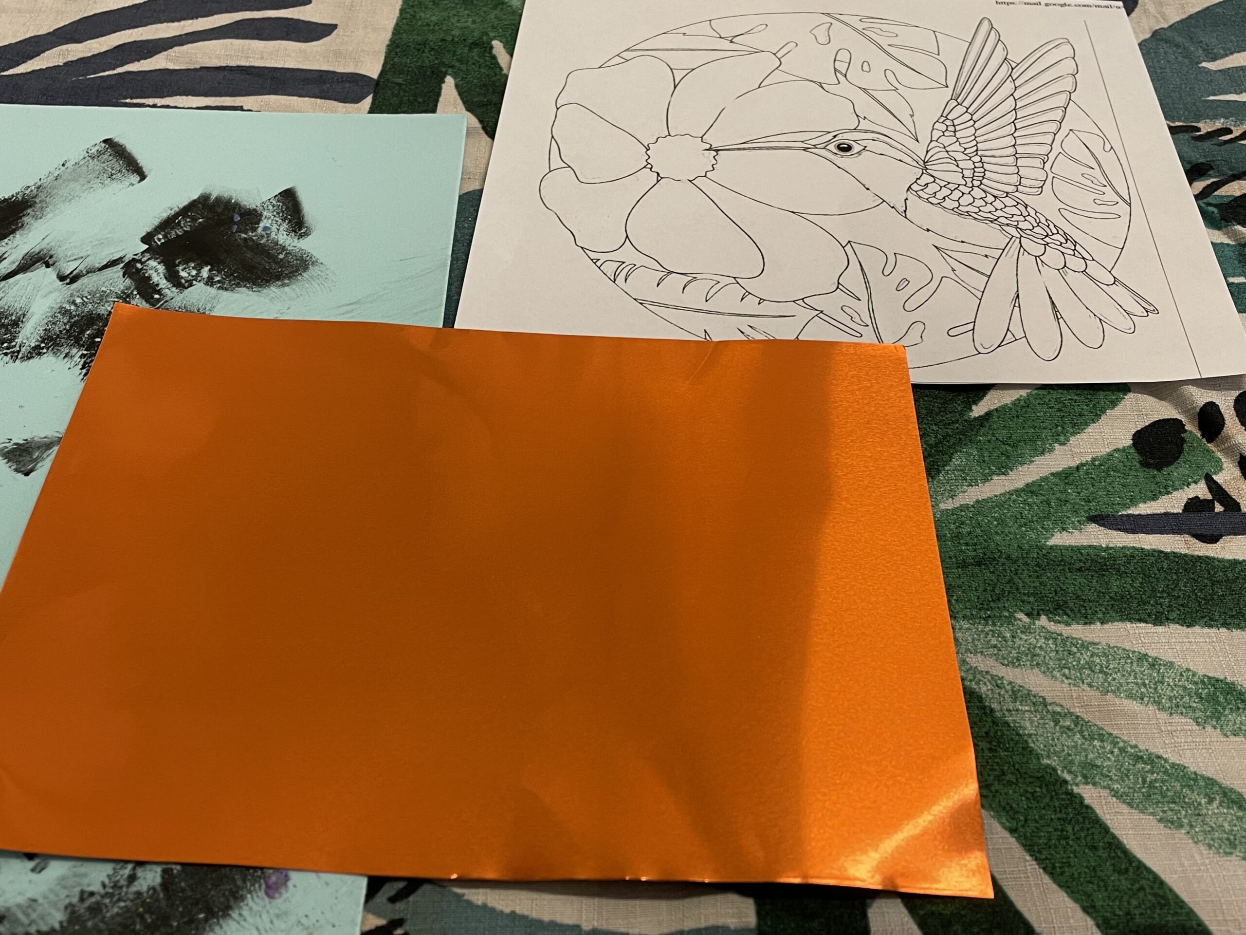 Cuadrado de hojalata de color naranja y diagrama de colibrí