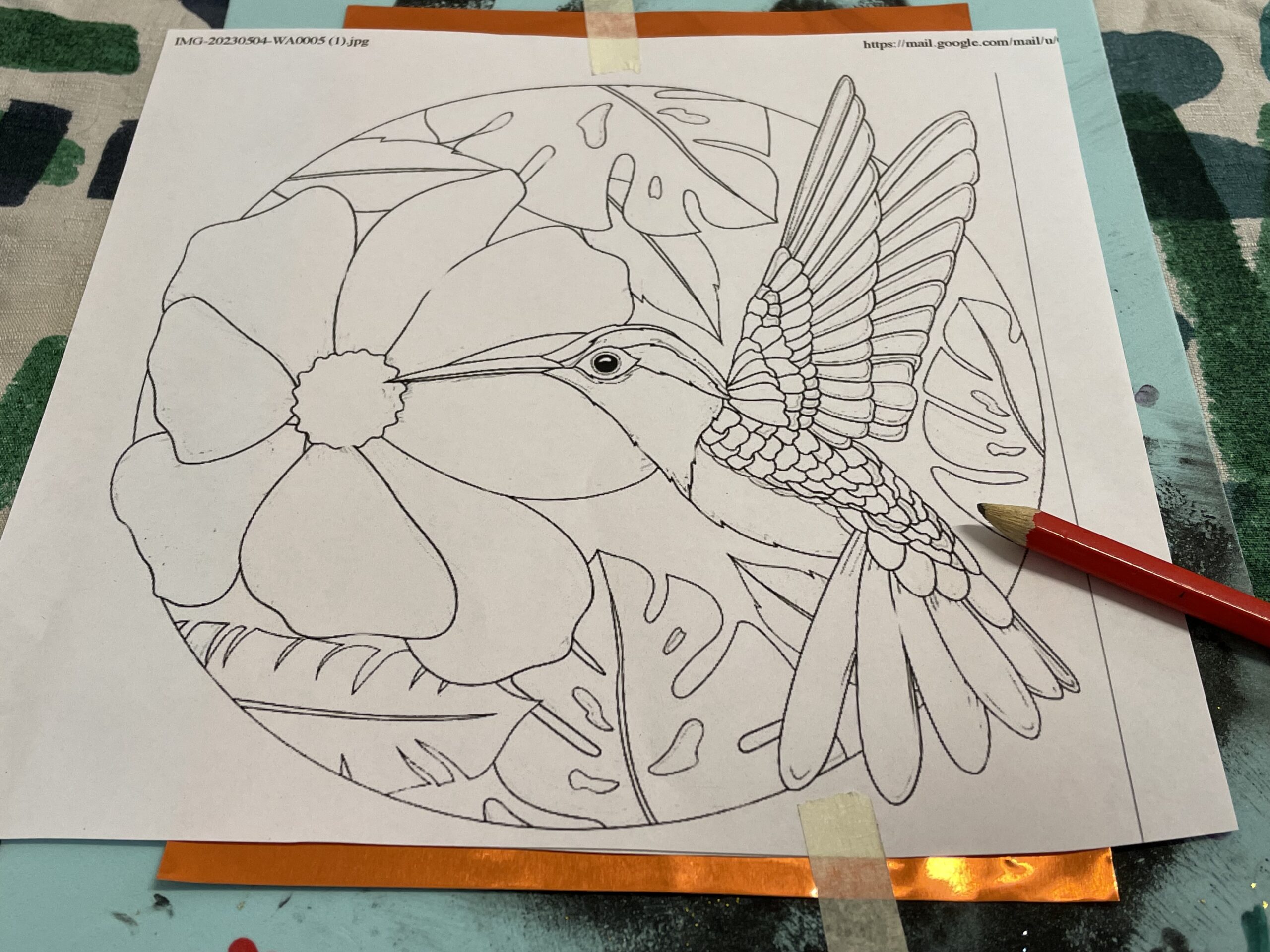 Coloca el diagrama sobre la lata y encima de su cartón (o superficie dura). Agrega un poco de cinta para mantener el diagrama en su lugar.