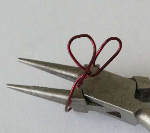 Paso 6: Tira del alambre hacia abajo para crear el primer lado del corazón.