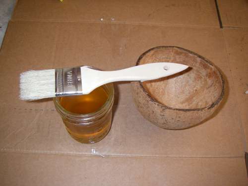 Paso 5: Pintar con la pintura transparente o con el aceite de linaza  todo el coco y esperar que se seque.
