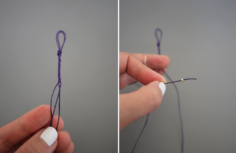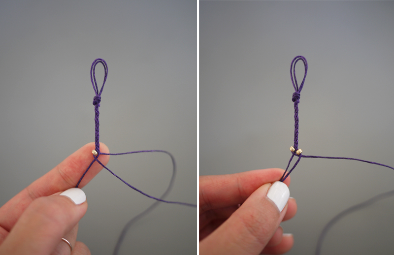 Paso 3: Continúa trenzando y coloca la segunda cuenta.