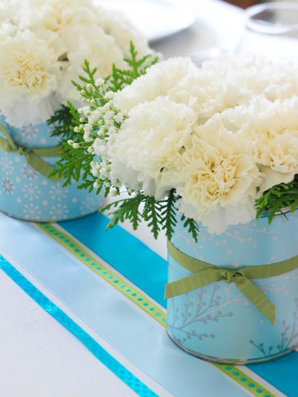 5. Una lata cualquiera, debidamente recubierta con papel y adornada con una cinta puede convertirse en uno de los centros navideños de mesa perfecto.