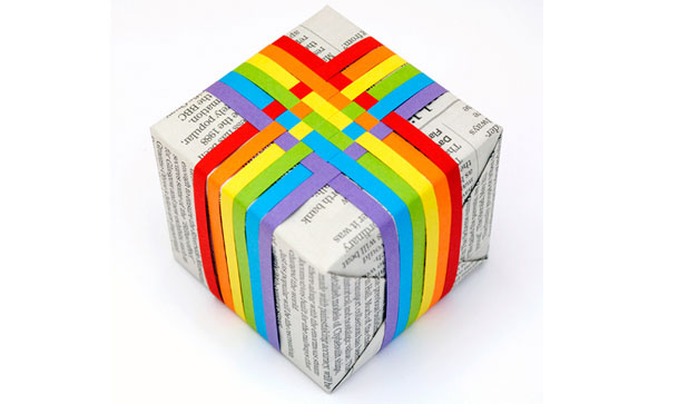 4. Usa el papel periódico y adórnalo con cintas de colores. El resultado es espectacular.