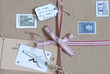 1. Dale un toque retro y lleno de historia, te bastará añadir diferentes elementos como los sellos y usar un papel de regalo oscuro que imite el cartón.