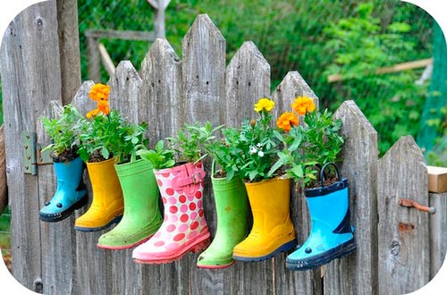3. Hacer un jardín colorido ayudándote de botas de agua y gomas de coches viejas. Solo tendrás que pintarlas y ¡voilà!