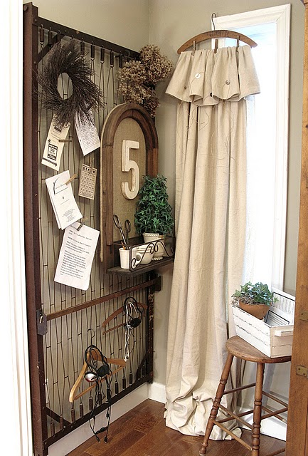 1. Hacer de un viejo somier de muelles una parte de la decoración hogareña para colgar todas esas cosillas que normalmente tenemos regadas por doquier.