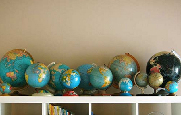 1. Colocar diferentes mapa mundi uno al lado del otro. Esta es una excelente idea si tienes algún travesaño y no sabes qué colocar en él.
