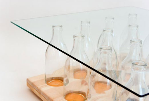 1. Mesa hecha con botellas de cristal. Puede que te coste un poco hacer la base pero el resultado final vale la pena por su originalidad.