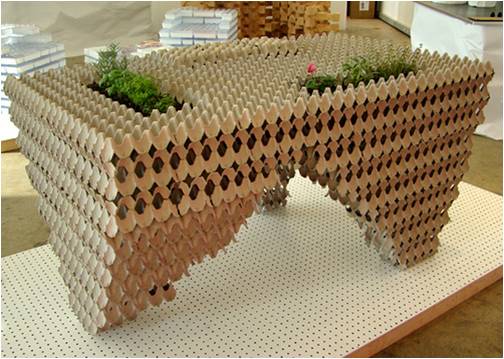 4. Mesa hecha con cartones de huevos. No debe ser muy resistente pero sí original.