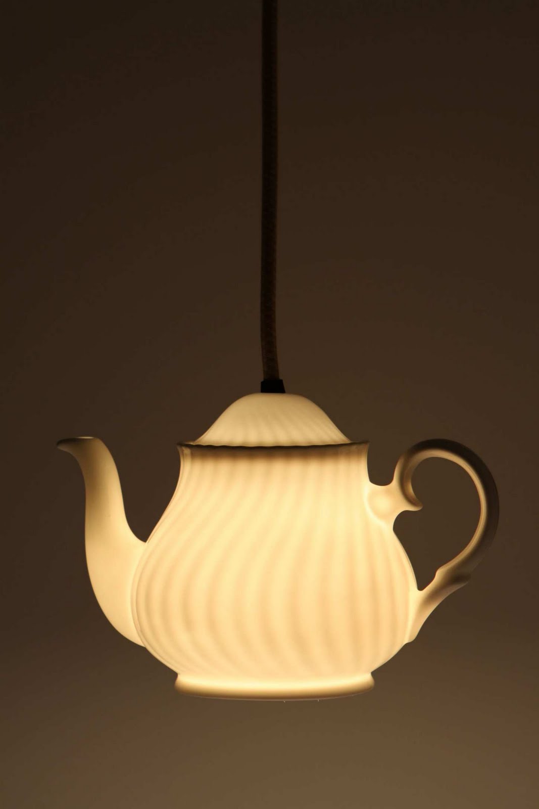 4. Usarla como una lámpara para la pared. En este caso, asegúrate de pegar bien la tapa. no queremos que la tetera le caiga a alguien en la cabeza.