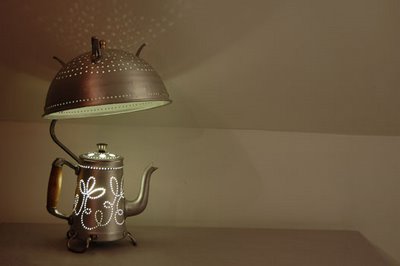 5. Convertirla en una lámpara de mesa. Solo tendrás que abrirle algunos agujeros y unirla a un cazo. ¿A que el resultado es del todo sui generis?