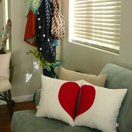 Los cojines pueden convertirse en un regalo muy original con el cual sorprender a tu pareja el día de San Valentín. Si tienes nociones básicas de corte y costura puedes tomar ideas de estos cojines. De lo contrario, puedes revisar este artículo sobre cómo hacer almohadones.