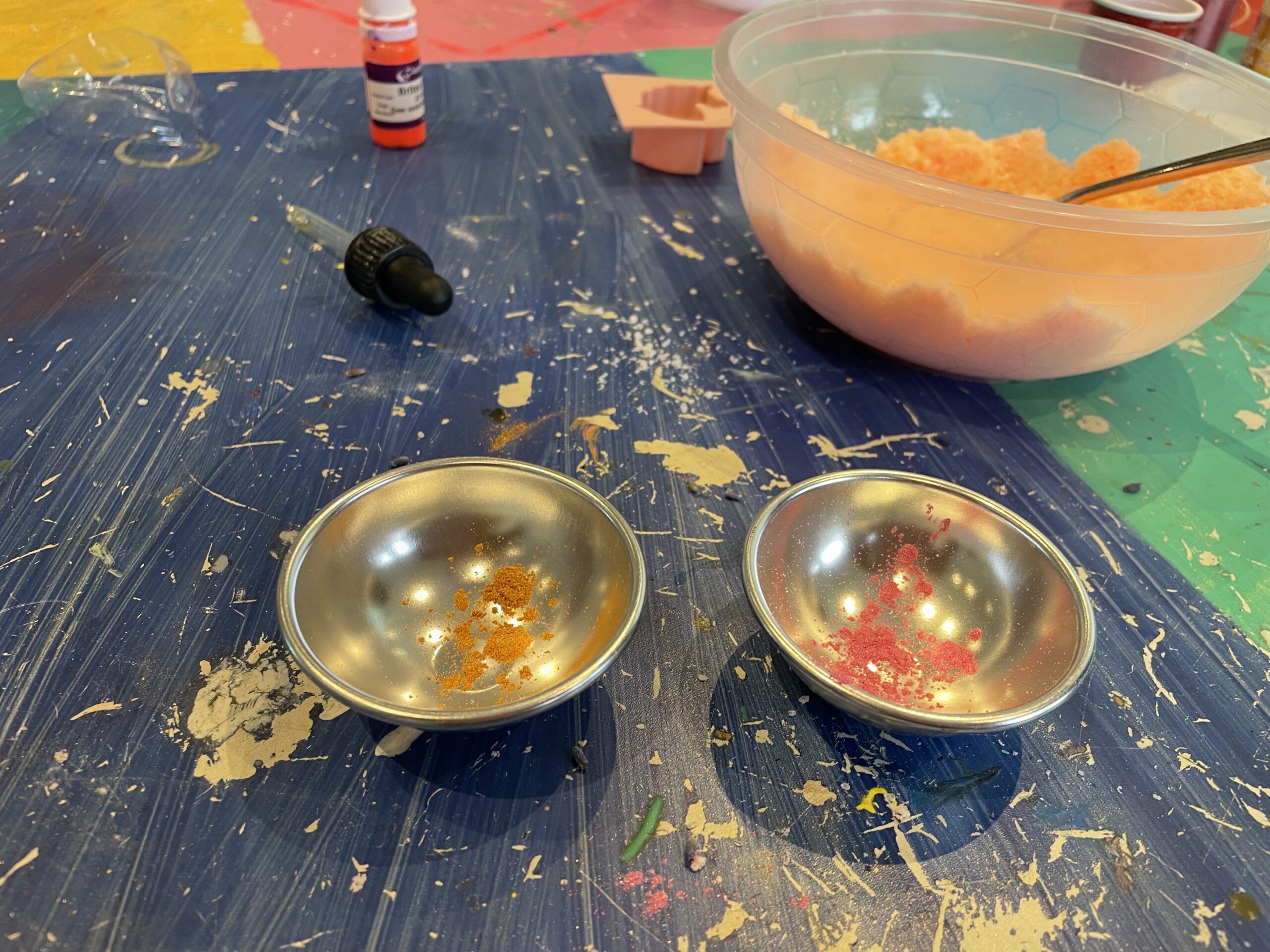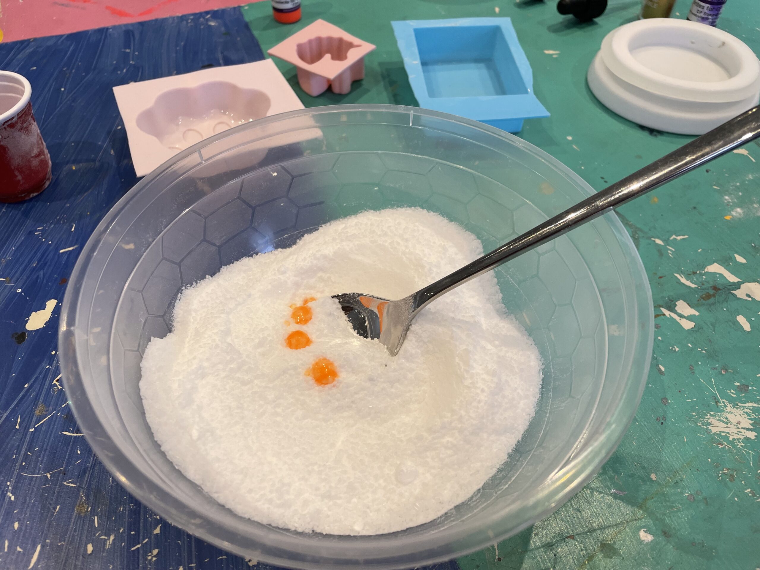 • Mezcle muy bien todos los ingredientes y especialmente los pigmentos de color del colorante, ya que esto realmente liberará el color en los ingredientes secos y hará que el color “resalte”.
