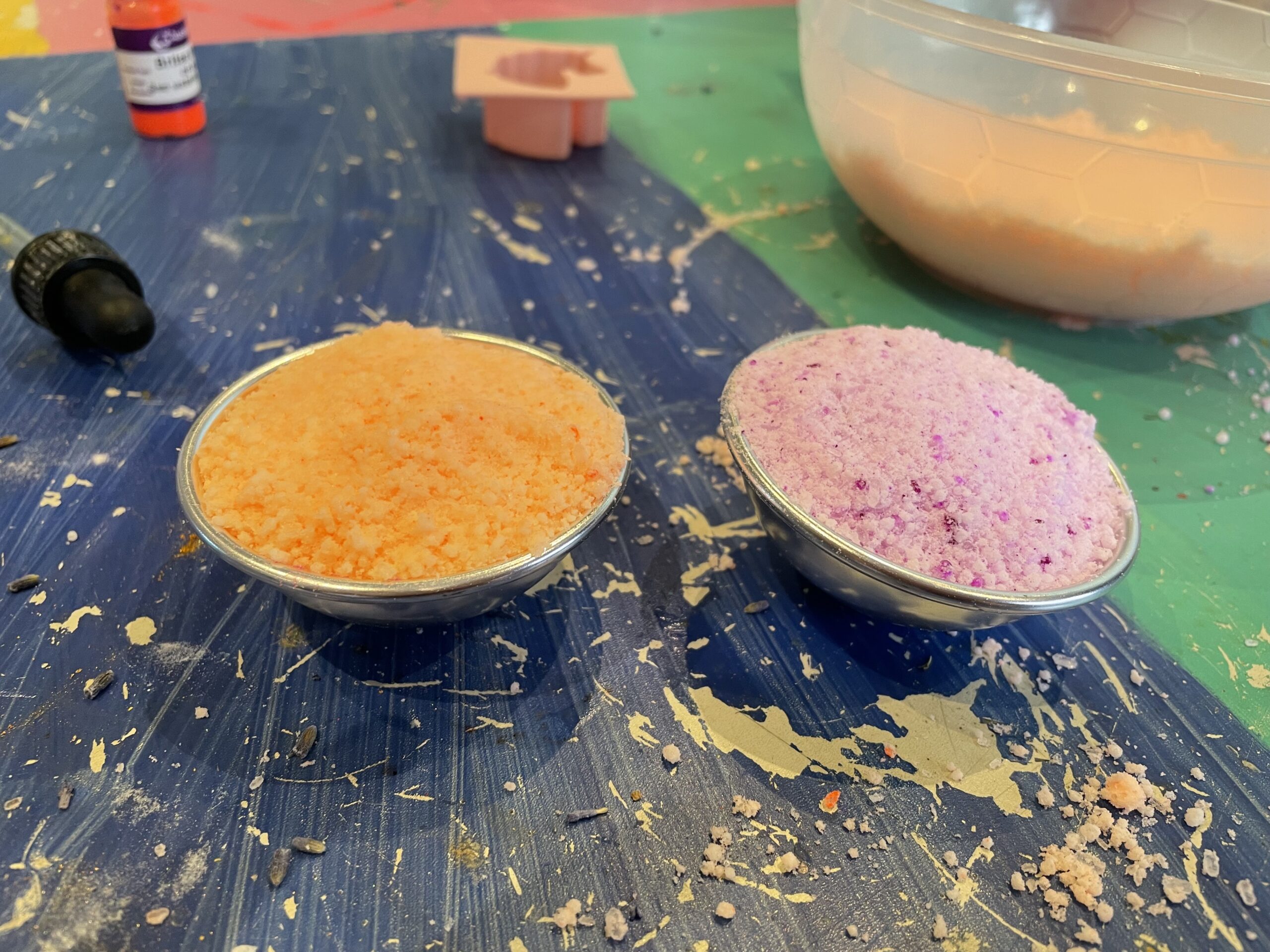 También ponemos mucho énfasis en el uso de purpurina y colores que sean seguros para el medio ambiente, se pueden adquirir en su tienda de artesanía local o en línea. ¡No uses colorantes alimentarios, ya que mancharán tu baño! Así que ten cuidado con el color que elijas.