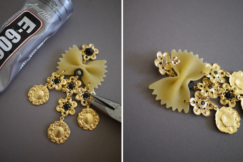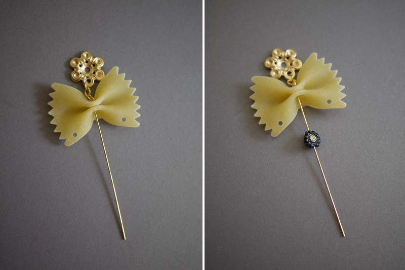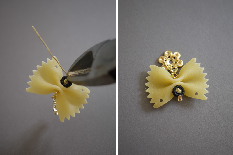 Paso 4: Toma las pinzas y, el exceso de metal que te ha quedado, dóblalo sobre sí mismo. Después, córtalo. Esta es la parte más complicada porque no podrás hacer fuerza sobre la pieza de pasta o correrás el riesgo de romperla.