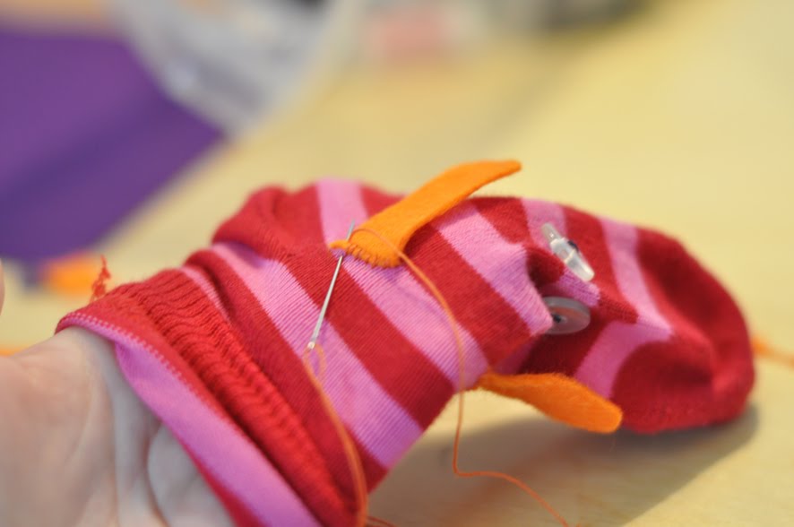 Paso 1: Toma el calcetín y cose dos botones en el sitio donde deberían ir los ojos de la marioneta.