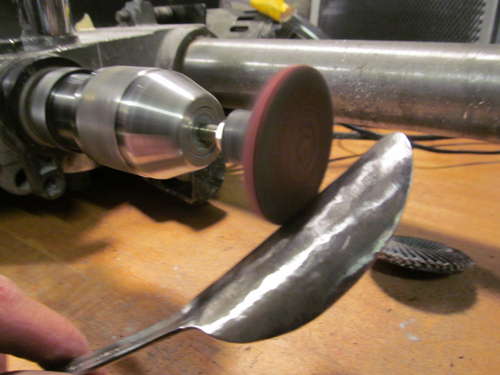 Paso 4: Para terminar el calzador para zapatos , con la ayuda del taladro y de la broca alijadora se rasca la superficie del calzador hasta que quede libre de imperfecciones y adquiera un aspecto brillante.