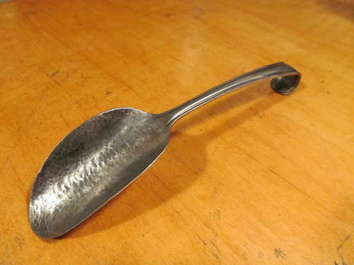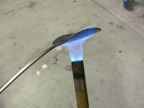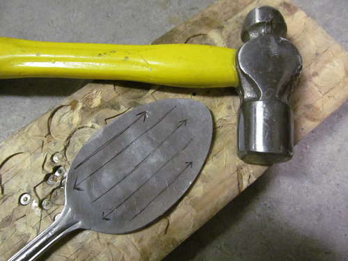 Paso 1: Primero hay que aplastar la cuchara con un martillo hasta que sea totalmente plana, como en la foto que aparece a continuación.