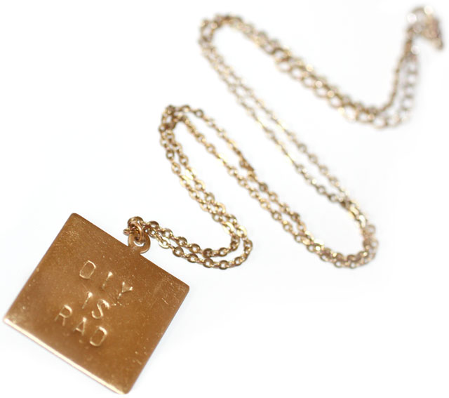 Paso 2: Colocar el colgante en la cadena ayudándote de un pequeño aro y cerrarlo con las pinzas. Ahora tendrás listo tu colgante con la inscripción que hayas grabado.