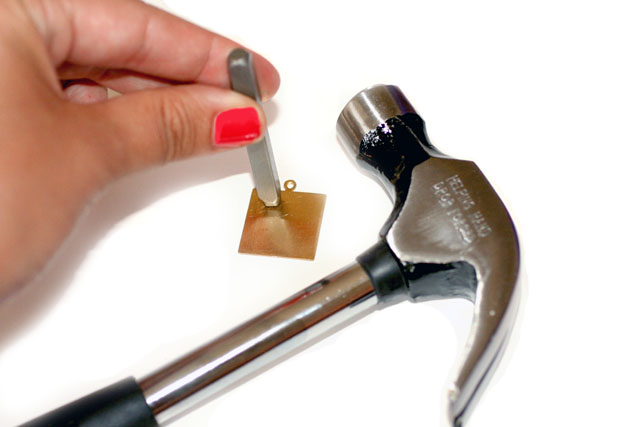 Paso 1: El procedimiento realmente es muy sencillo, te bastará tomar la primera letra de la palabra que quieras formar y martillar encima para que se grabe en el colgante o la placa que hayas elegido. Continúa con el resto de las letras.