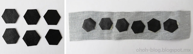 Paso 1: Corta 12 hexágonos en la tela de piel sintética (para hacer más fácil el procedimiento, puedes usar una tapa y marcar un círculo de unos 2.5 cm de diámetro).
