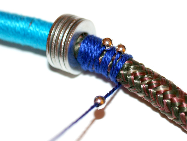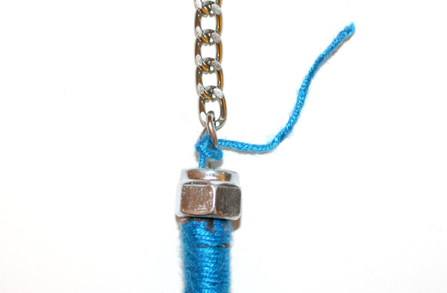 Paso 11: Añade objetos varios utilizando rondelas puestas en la cuerda o insertando perlitas en el hilo mientras lo envuelves.