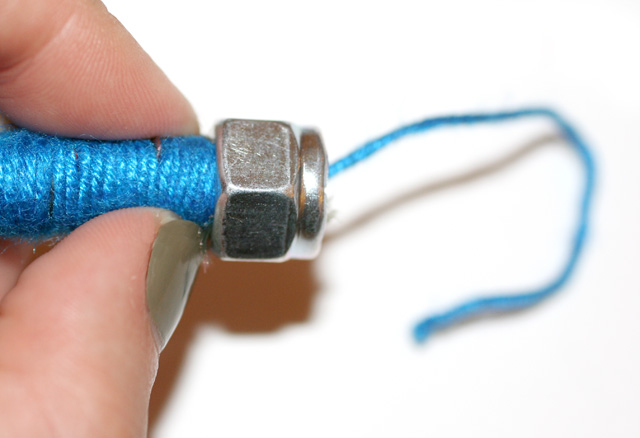Paso 8: Pasar el hilo a través de la tuerca y entonces atornillar la tuerca a la extremidad de la cuerda.