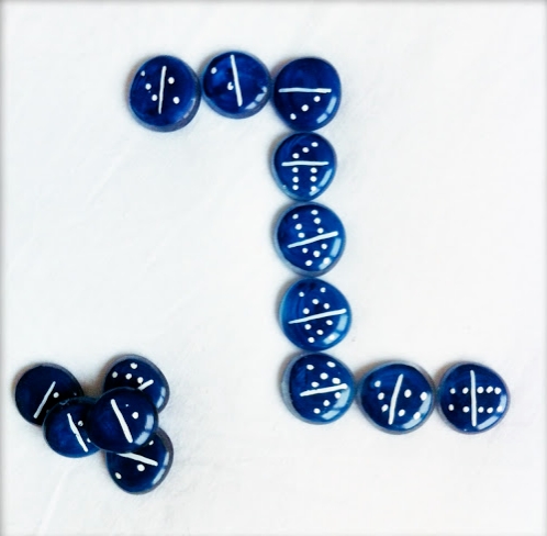 Paso 2: Una vez que se haya secado, toma el rotulador blanco permanente y pinta los diferentes números de cada ficha.