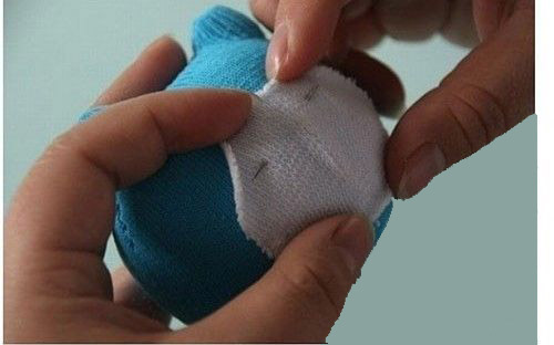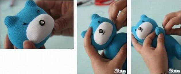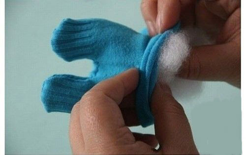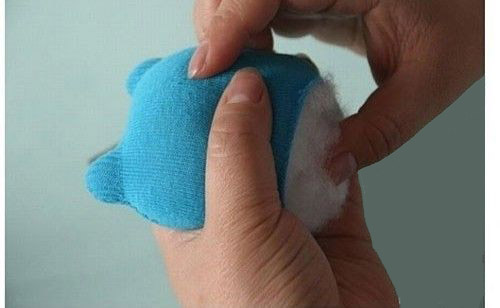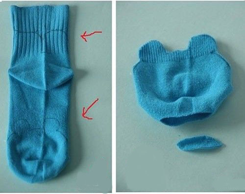Paso 1: Marcar el cuerpo del oso en el calcetín, tal y como se muestra en la figura y después recortarlo.