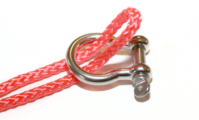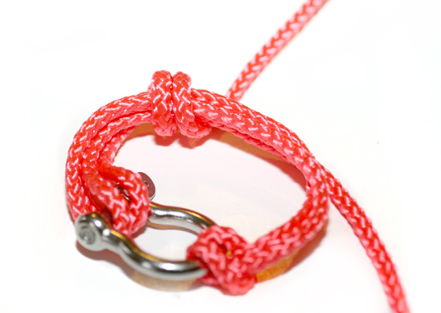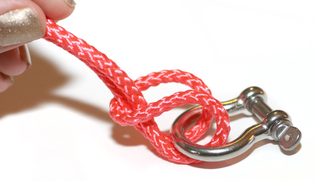 Paso 1: Primero debes ajustar uno de los extremos de la cuerda al cierre de metal, tal y como se muestra en la figura.