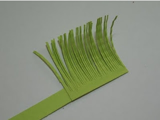 Pega la tira de papel a la cartulina, en uno de los extremos y recorta tiras finas.
