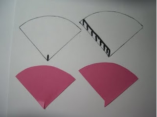 Toma el papel con el que crearás la zanahoria (que será siempre un cuarto de círculo) y dóblalo a la mitad pero deja un espacio de ¼ de pulgada.