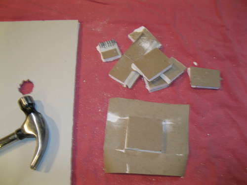 Paso 1: Delinear en un panel de yeso (más grande del agujero a reparar), cuadros de 2/3 pulgadas y cortarlos con el cuchillo cuidando de no dañar el papel que está en la base.