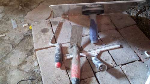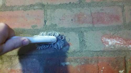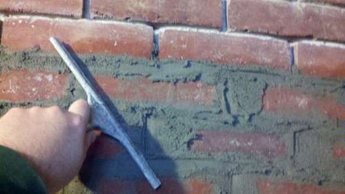 Paso 6: Ahora tenemos tan solo media hora para aplicar el cemento en los espacios que han quedado entre los ladrillos, de otra forma se endurecerá. Para ello deberemos utilizar las paletas: ancha y delgada para mejor ajustar la mezcla y adaptarla, cuidando siempre que vaya lo más posible en profundidad.