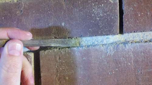 Paso 1: Primero hay que remover con el cincel todo el cemento viejo y luego limpiar el espacio que queda entre los ladrillos con la ayuda de una brocha.