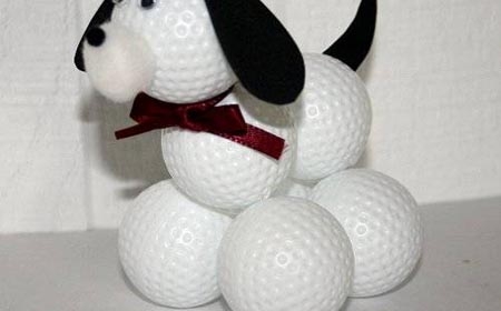 ¿Tienes un amigo aficionado al golf y quieres hacerle un regalo original? He aquí un perro de adorno hecho casi en su totalidad con pelotas de golf. Podrás utilizarlo como un objeto decorativo o como pisapapeles.