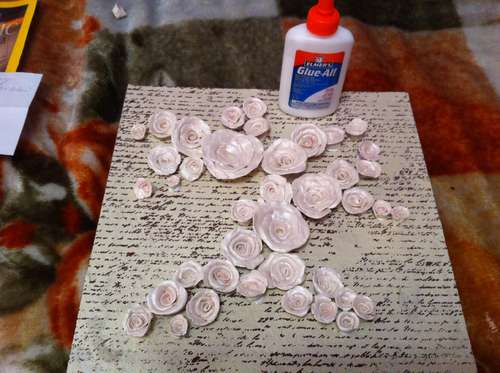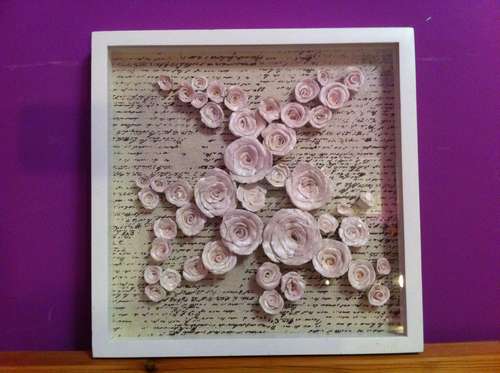 Paso 7: Ahora no te queda sino pegarlas al interno de la caja-cuadro. Si quieres darle un toque vintage, podrás escribir algo detrás, quizás un poema de amor para tu cuadro con rosas