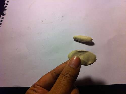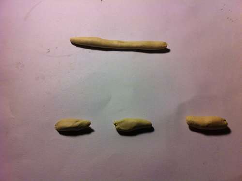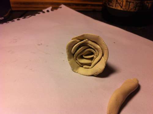 Paso 1: Para hacer las rosas, toma la arcilla, moldéala hasta obtener un cilindro y córtalo en pequeños trocitos.