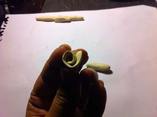 Paso 2: Aplasta cada uno de los trocitos para darle forma a los pétalos.