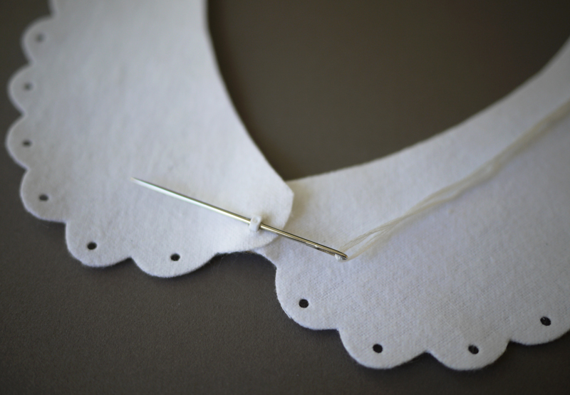 – Dos piezas con bordes festoneados de cuello blanco cortados en fieltro o franela de caucho.
