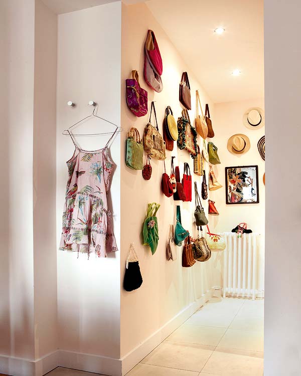 6. Decorar echando mano a los bolsos y los sombreros. Así matarás dos pájaros de un tiro ya que evitarás que estos complementos de moda ocupen espacio en tu armario.