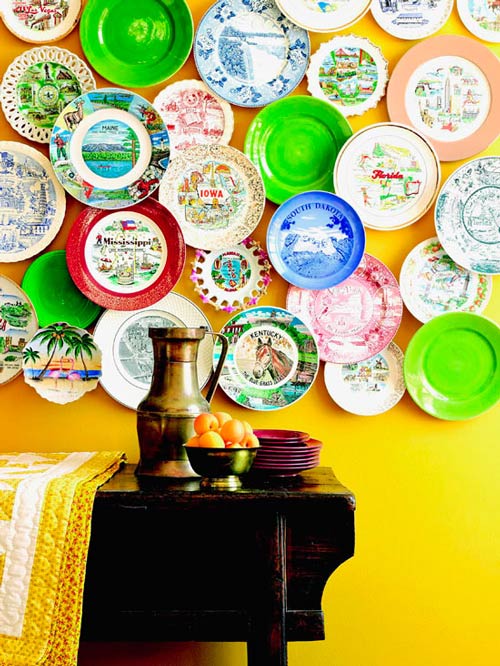 7. Decorar con platos. Solo tendrás que tener mucha paciencia para poner los soportes pero el resultado tiene un innegable encanto vintage.