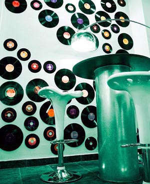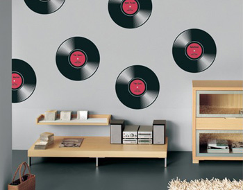 1. Una de las ideas más básicas y sencillas de hacer es colocar algunos discos en la pared. El resultado será genial.