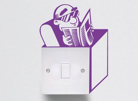 Básicamente, existen dos formas de decorar interruptores. Una de ellas consiste en colocar los vinilos por la parte exterior del interruptor de la luz; es decir, directamente en la pared. Los ejemplos son múltiples, algunos de ellos con un toque de humor.