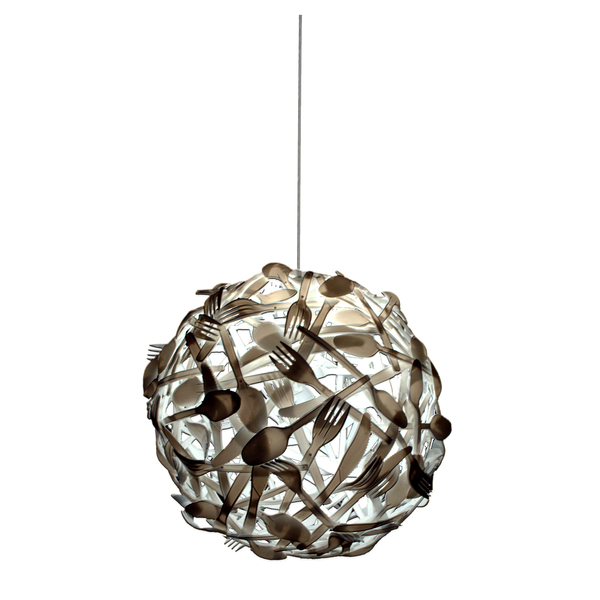 8. Hacer una lámara. En este caso se han usado cubiertos de plástico, mucho más fáciles de moldear.