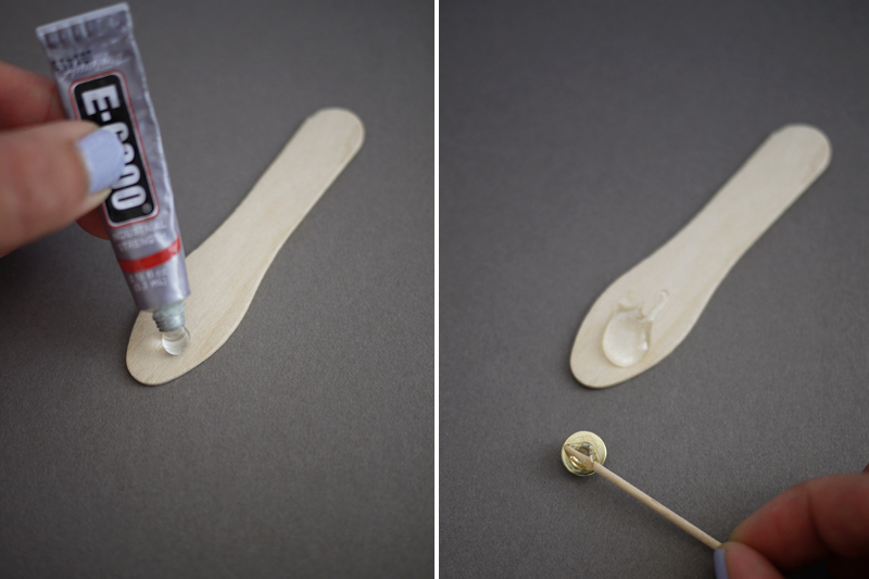 Paso 1: Ayudándote del palillo de dientes, toma un poco de pegamento y aplícalo en uno de los apliques.
