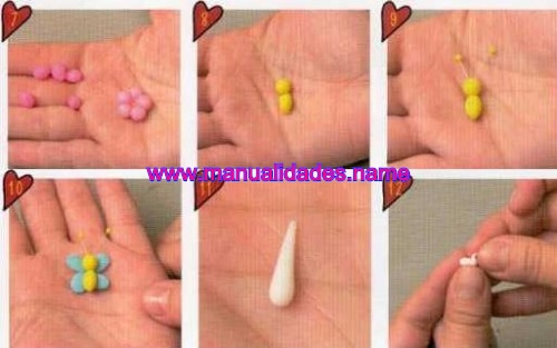 8-Mariposa: Haz una bolita a modo de cabeza y a continuación un rollito con punta a ambos lados.