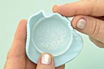 Estira un poco de masa verde, corta dos hojas y con una esteca dibuja las nervaduras y déjalas secar.