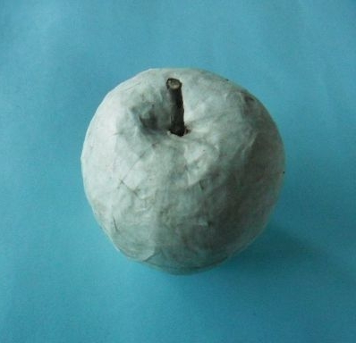 Paso 2: Una vez que hayas cubierto toda la manzana. Añade la cola al papel y continúa cubriéndola.